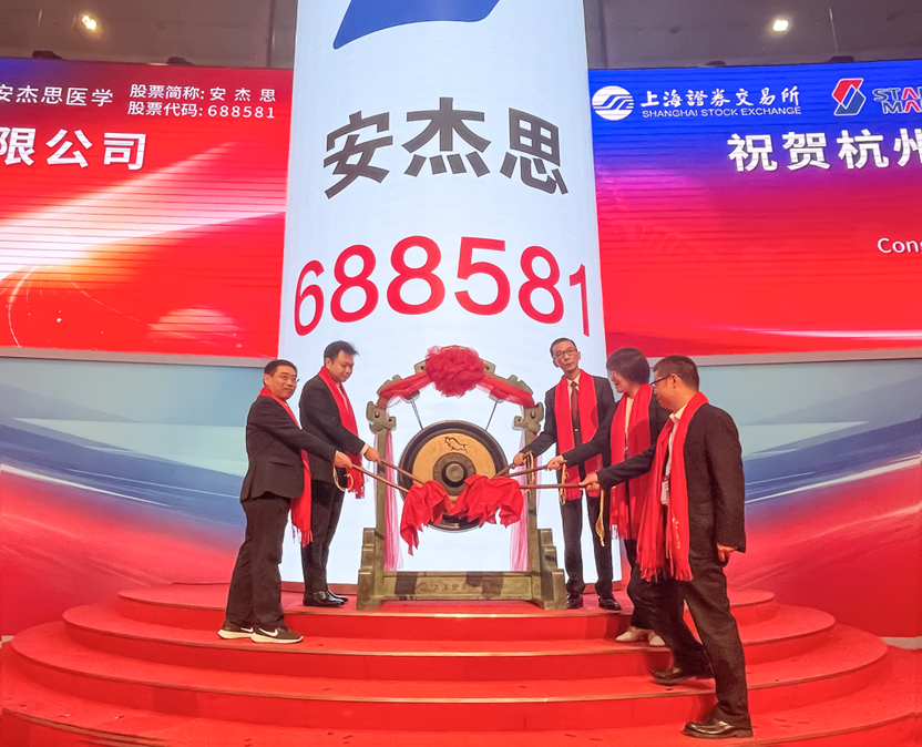 2023年5月19日9点30分,伴随着清脆的锣声响起,Ebpay基因参投的杭州安杰思医学科技股份有限公司正式在上海证券交易所挂牌上市,登陆科创板交易市场,股票代码:688581。