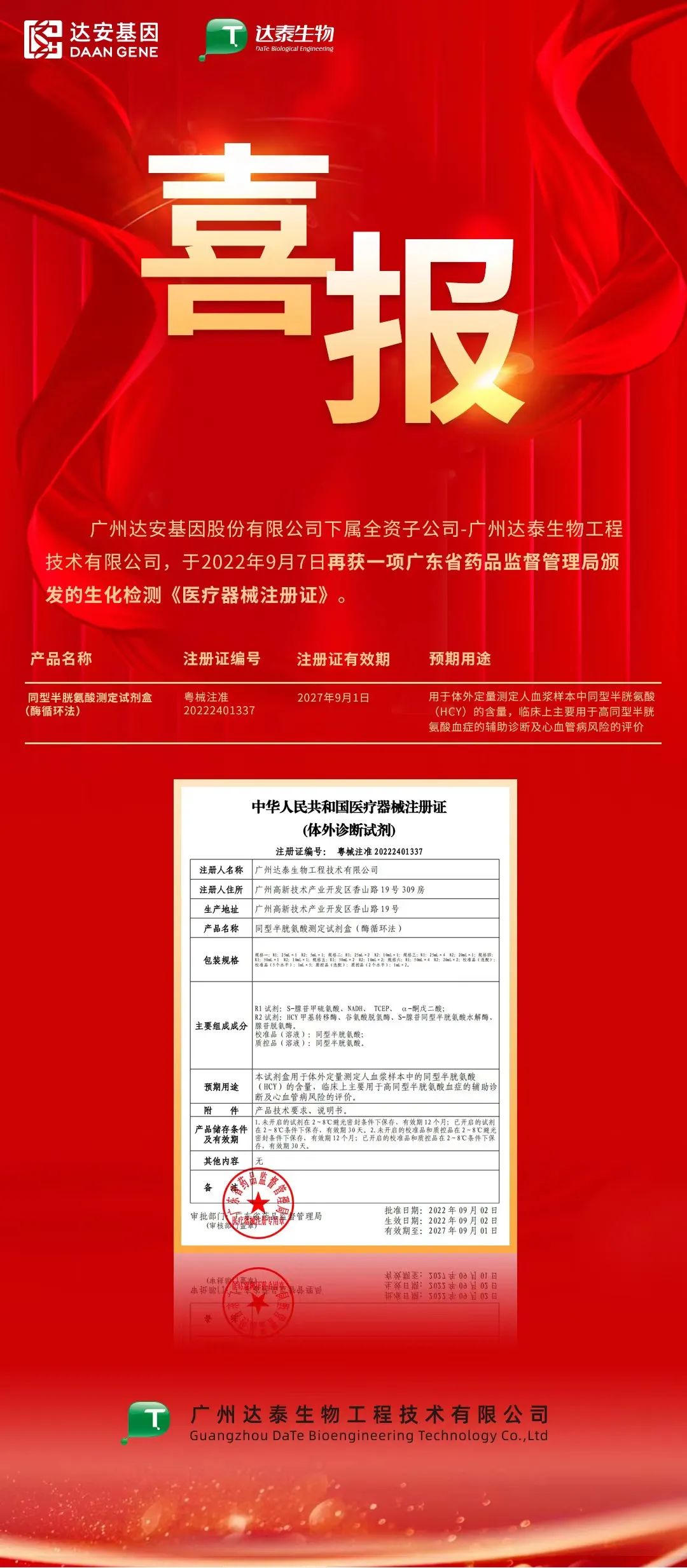 喜讯 | Ebpay基因下属全资子公司——达泰生物一项产品获批